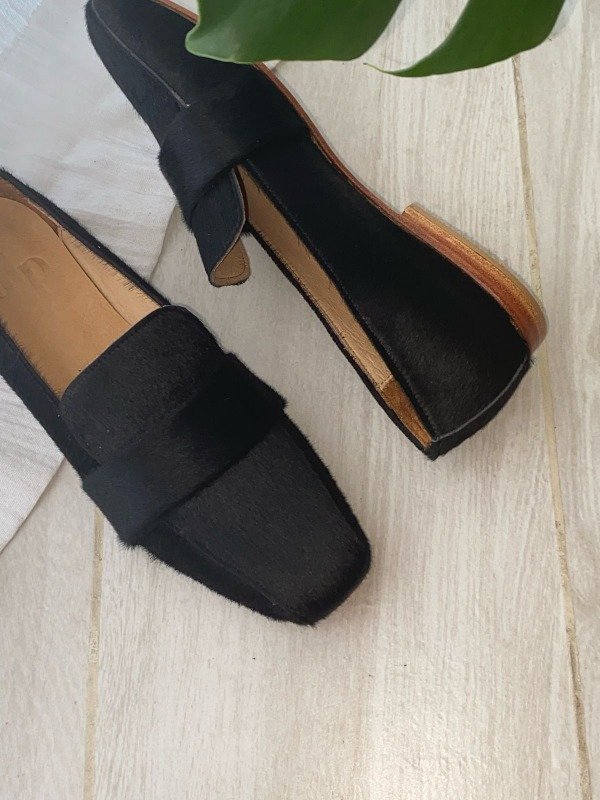 Mocasines atemporales confeccionados en cuero de pelo con vincha.