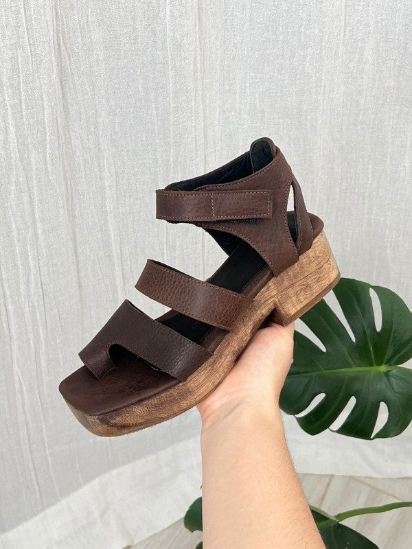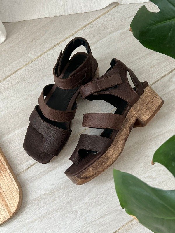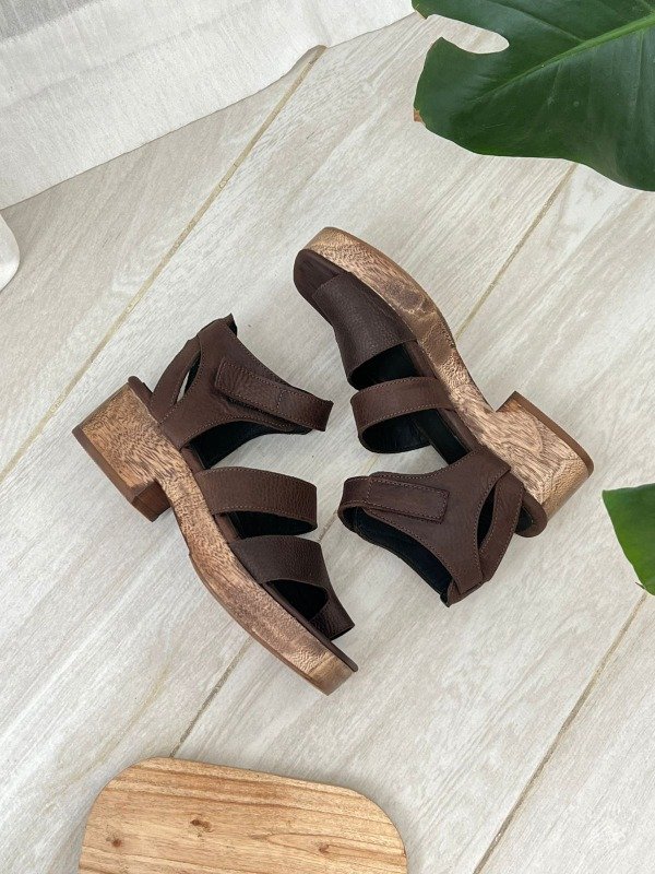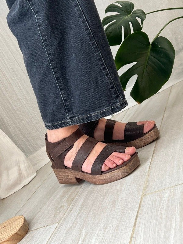 Sandalias de cuero vacuno forradas en cuero. Cierre con velcro.